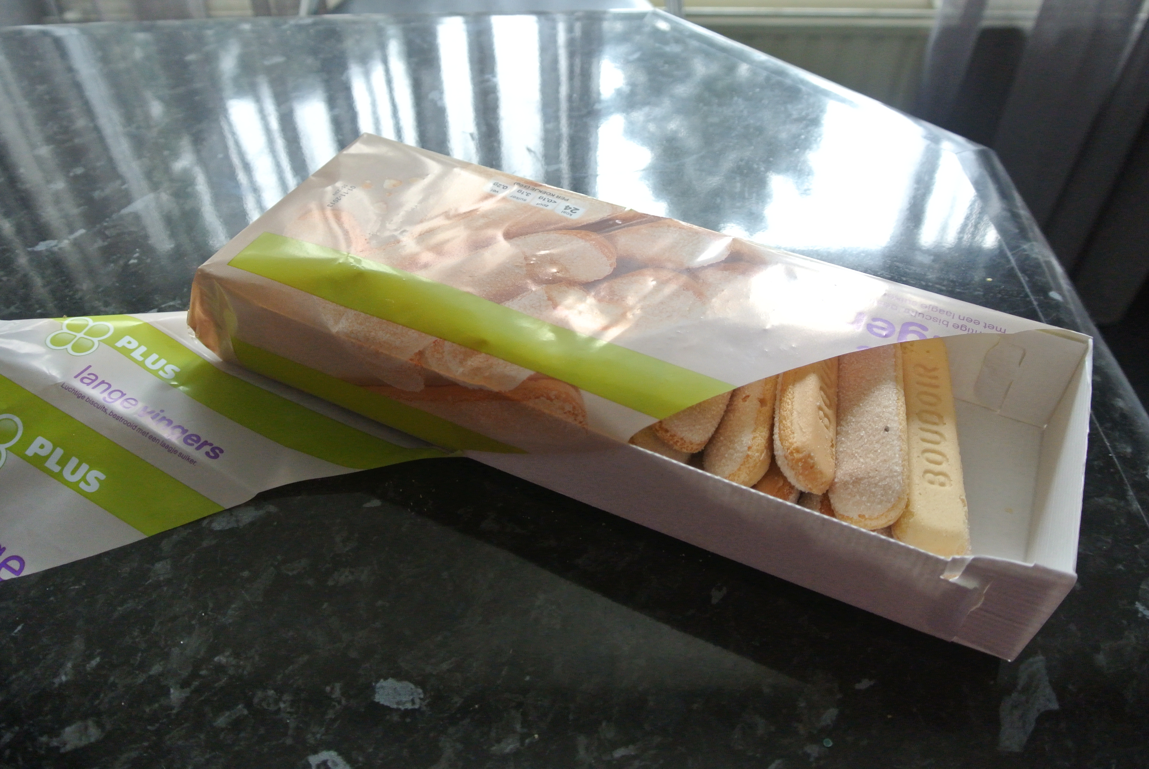 Dan pak je de lange vingers en doop je ze in koffiemelk. ( ik deed het met echte room en wat water).
